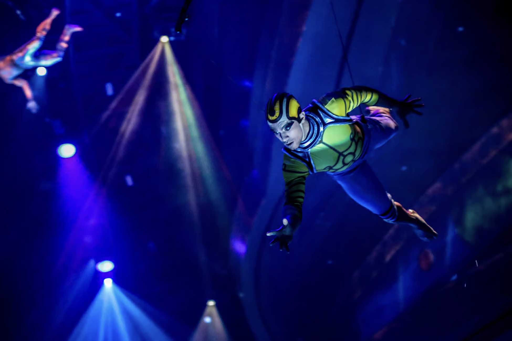 • Enjoy the 90-minute show which deftly blends the aerial acrobats’ unequaled performance with cutting-edge special effects